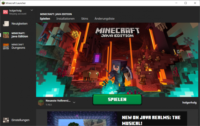 Wenn ihr die Minecraft Java Edition verwendet, müsst ihr euch nach dem Start mit eurem Mojang (nicht Microsoft) - Account einloggen. Danach landet ihr hier: